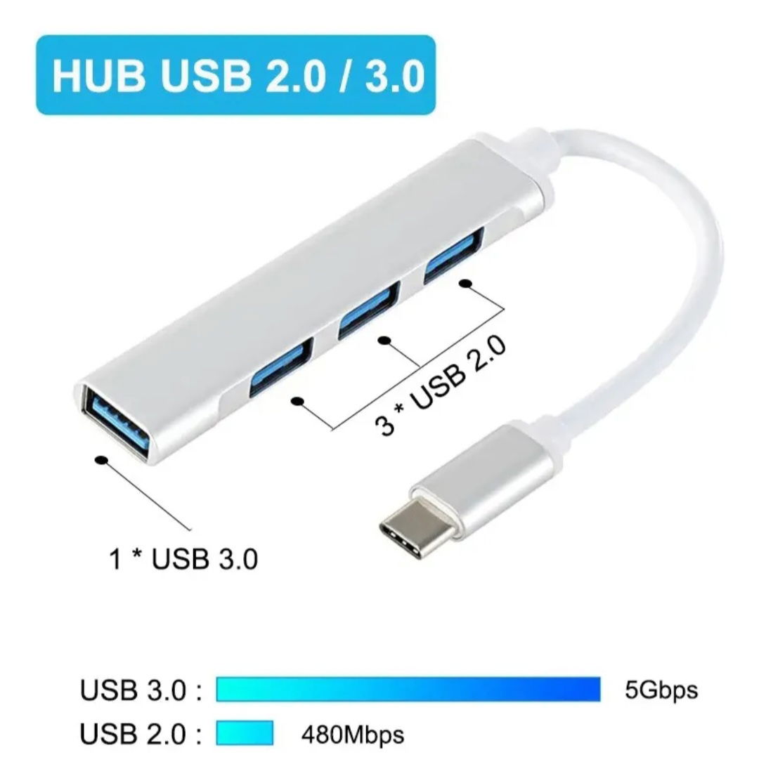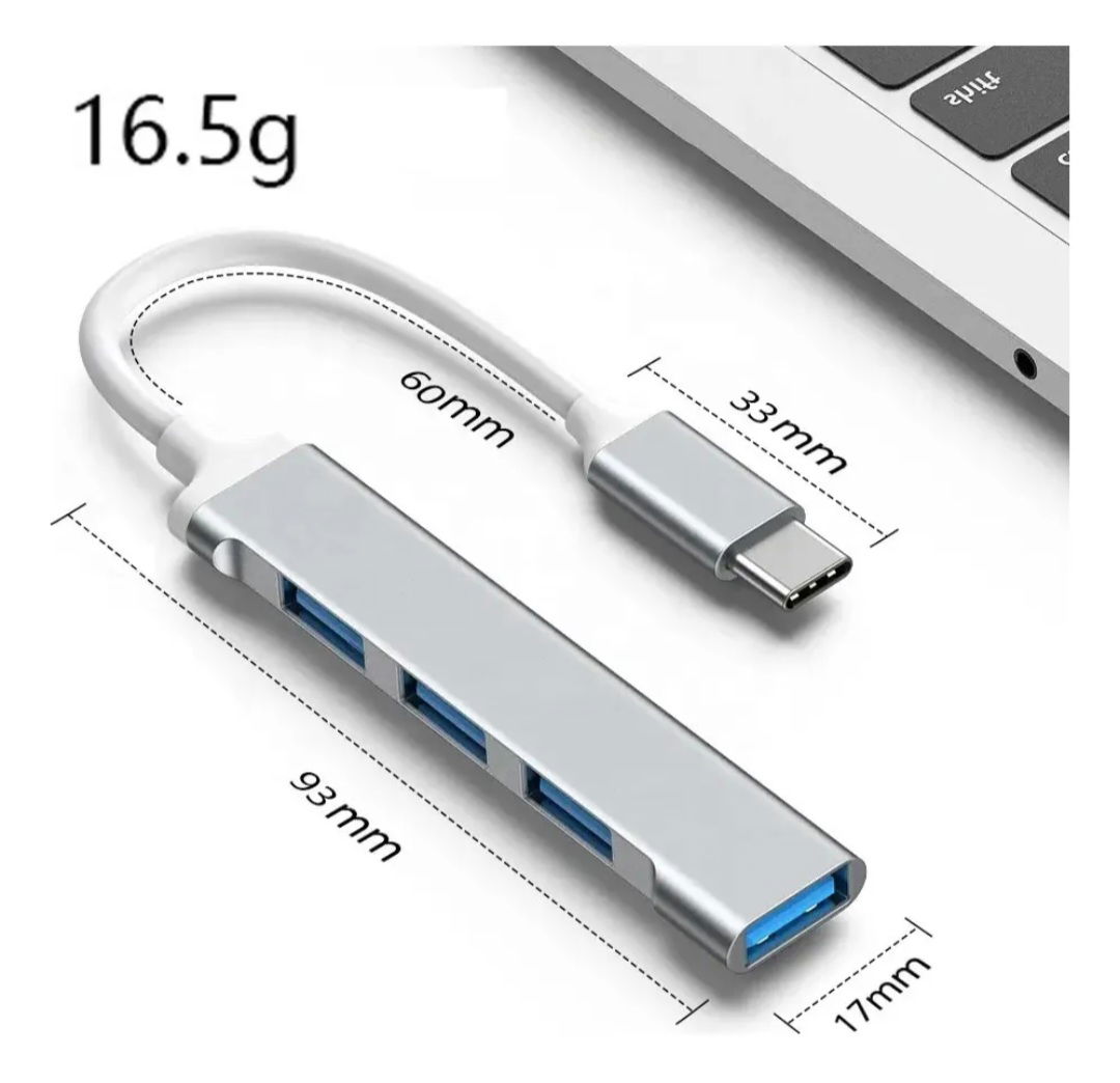 Hub Aluminio Para Notebooks Usb Tipo C 4 Puertos Usb 3.0