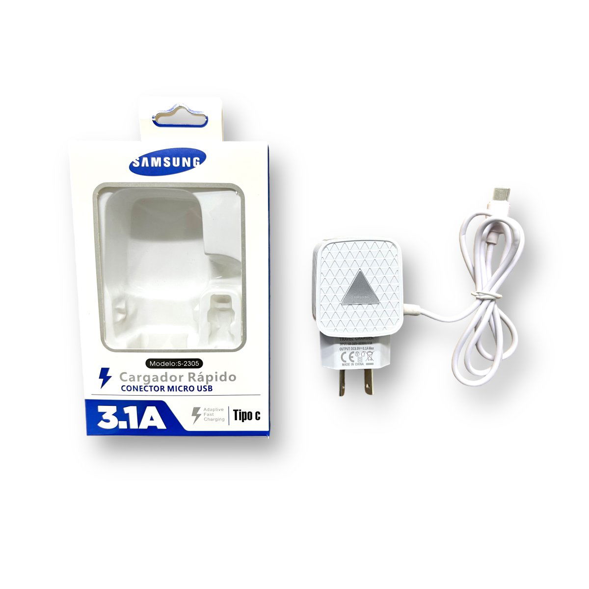 Cargador carga rapida 3,1 con ficha tipo C. Con logo. 2 puerto USB.