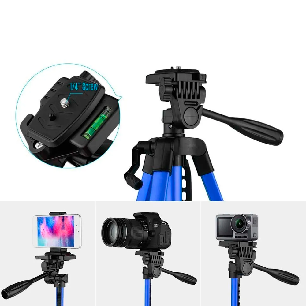 Amplia aplicación: 6.6 lbs máx. Capacidad de carga, funciona bien con la mayoría de cámaras DSLR, cámara digital, DV, mini videocámara; viene con un soporte para teléfono, también puedes utilizar tu smartphone con este trípode para tomar fotos o grabar vídeos.