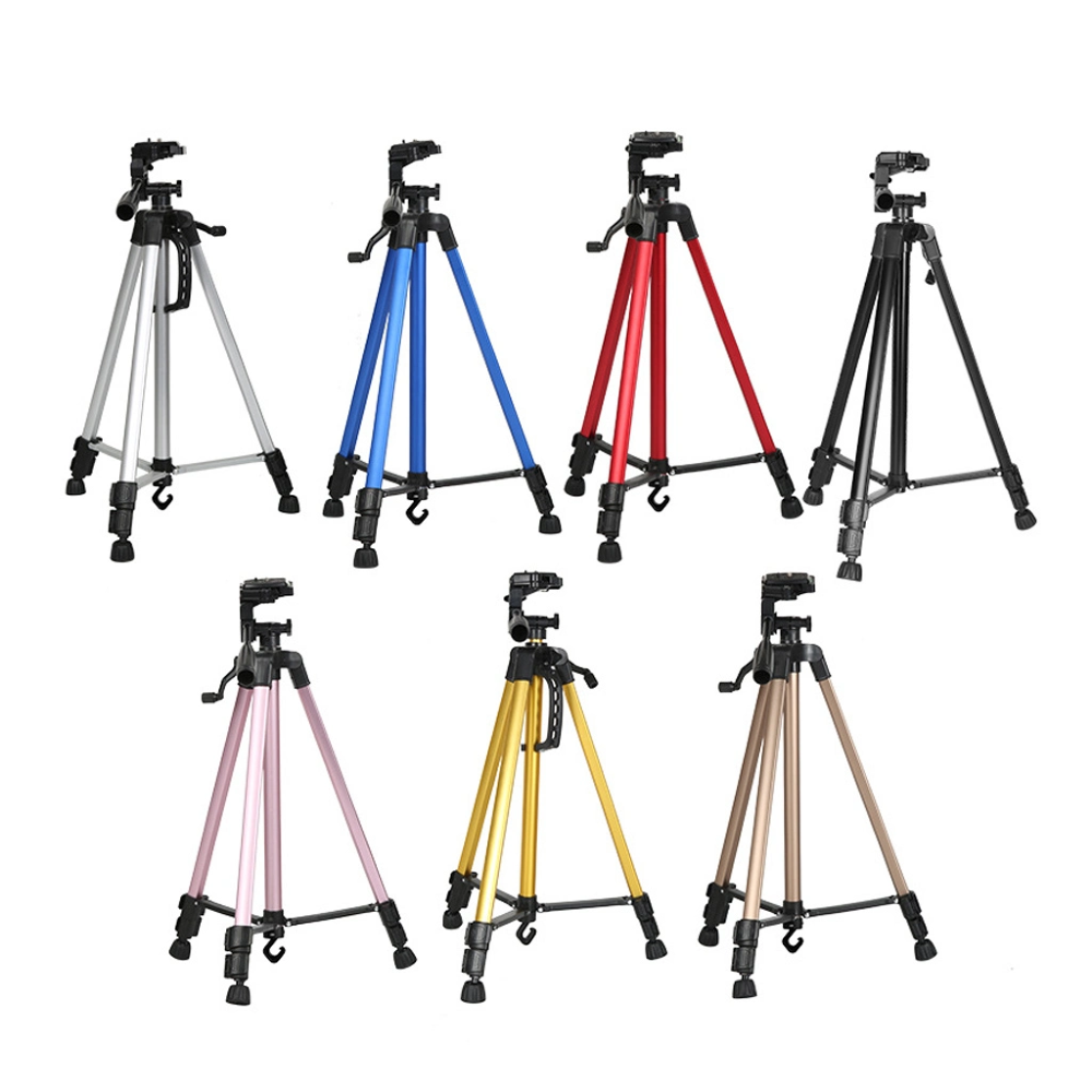 Altura ajustable: patas telescópicas de 3 secciones y diseño de eje medio que te permiten ajustar la altura del trípode libremente, y la altura máxima de uso es de hasta 140cm cuando el eje medio está totalmente extendido.