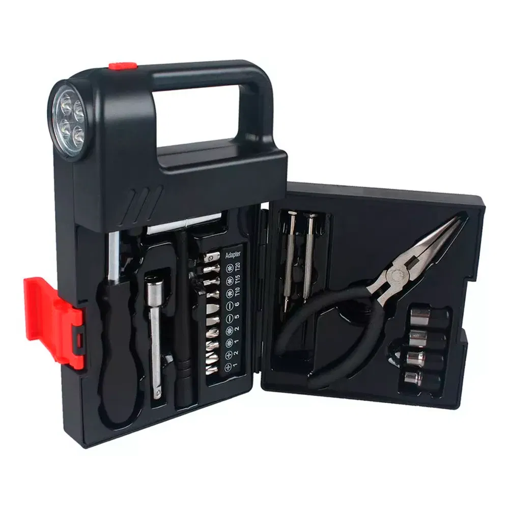 KIT HERRAMIENTAS 20 PIEZAS CON LINTERNA LLAVES TUBOS