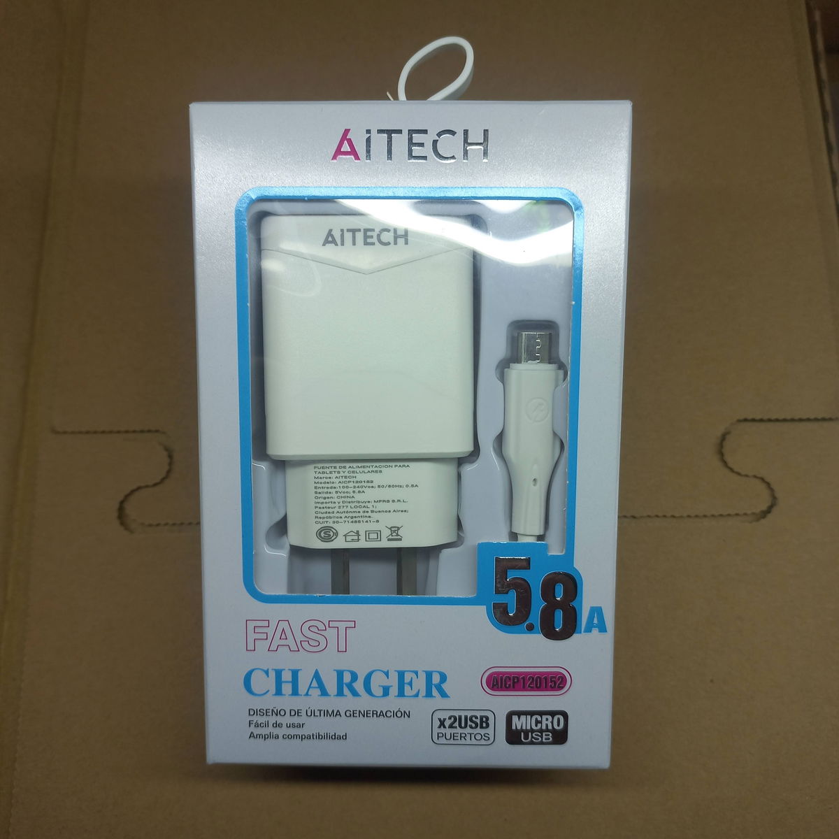 CARGADOR DE PARED AITECH FAST CHARGER 5.8A 2 USB MICRO
