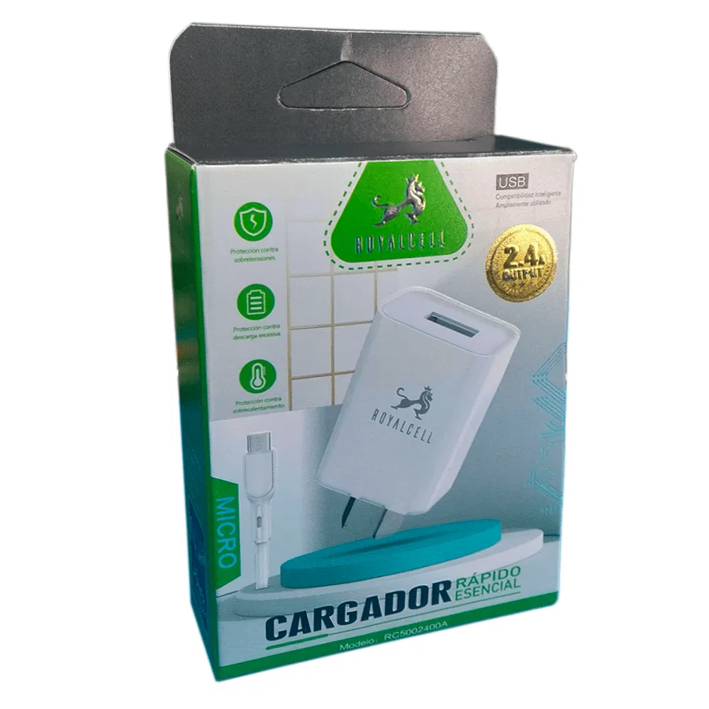 CARGADOR MICRO USB V8 CARGA RÁPIDA 2.4A ROYALCELL